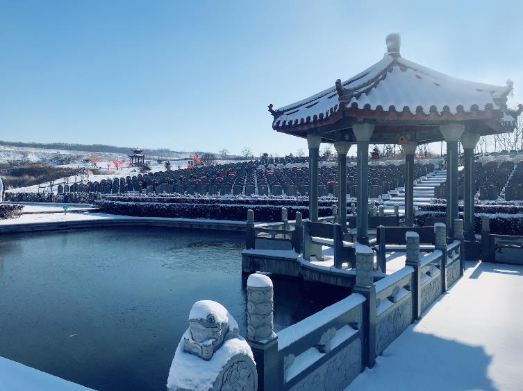 紫气东来大道,路设老子出关图老子悟道图太极图藏风聚气、迎福挡煞。福泽亭、祥润亭为祭祀家属提供休息,又可在此感念:滴水之恩涌泉相报—涌泉何况亲恩。园区内的天使造型诉说着所有员工的平和与善良,描述着我们对逝者长久的祝福和对至亲家属幸福的企盼。